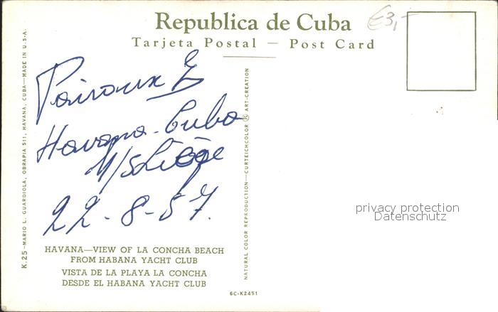 Havana Habana Concha Beach Habana Yacht Club postalisch nicht gelaufen Erhaltung siehe scans