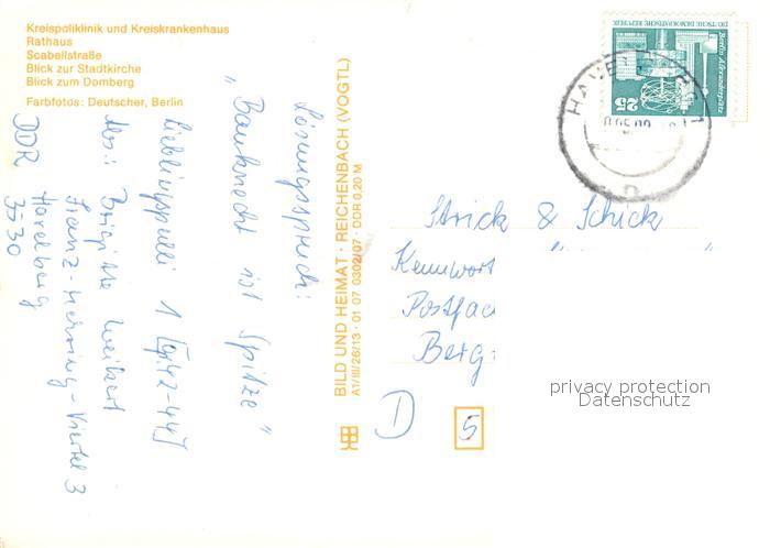 73654895 alte Postkarte Havelberg Kreiskrankenhaus Rathaus Scabellstrasse Stadtkirche Dombergblick postalisch gelaufen Erhaltung siehe scans [WerneD78] KatCode: 11110015090225