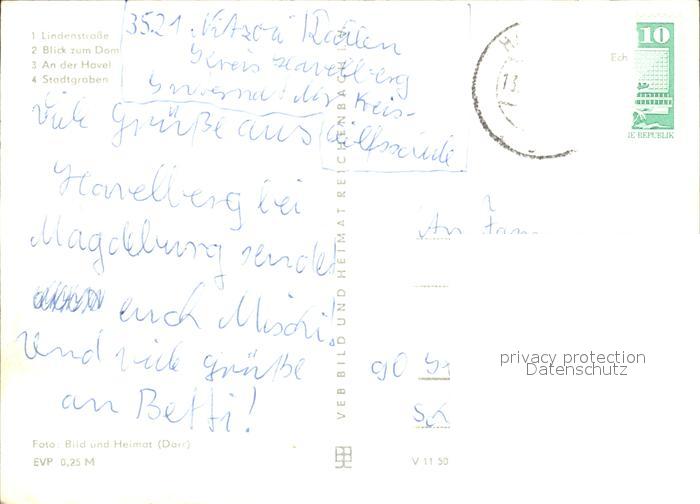 72328295 alte Postkarte Havelberg Lindenstrasse Dom Havel Stadtgraben postalisch gelaufen Erhaltung siehe scans KatCode: 11110015090225