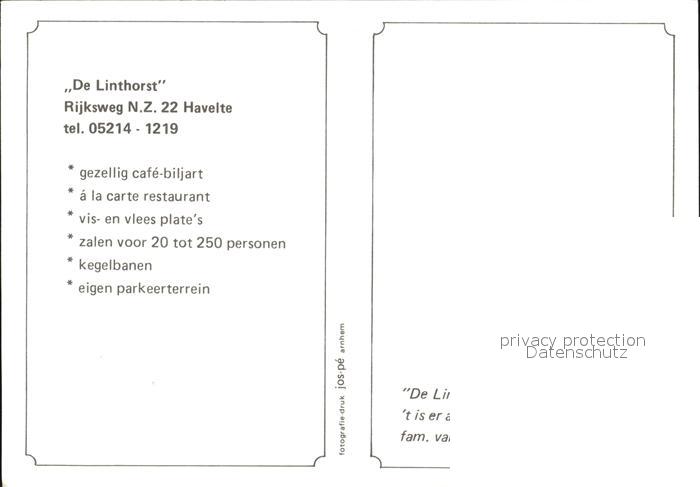 Havelte Cafe Restaurant De Linthorst Speiseraum Kaminzimmer Kegelbahn postalisch nicht gelaufen Erhaltung siehe scans