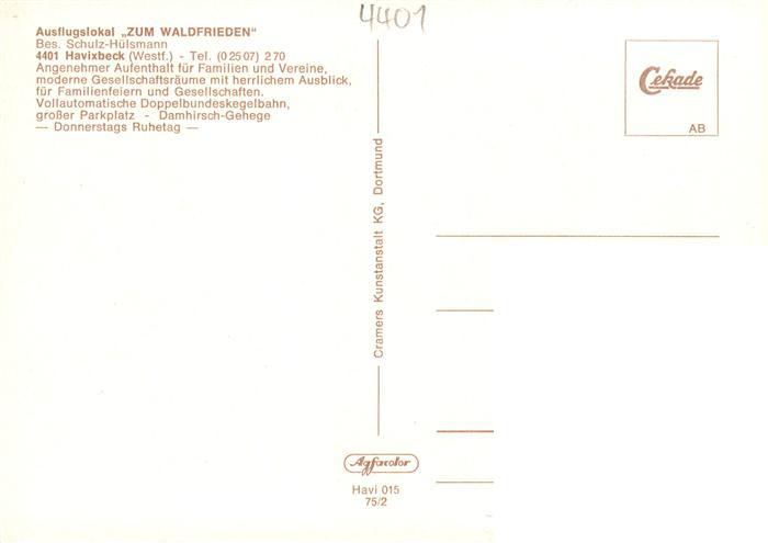 73894327 Havixbeck Ausflugslokal Zum Waldfrieden Gastraeume Wildpark postalisch nicht gelaufen Erhaltung siehe scans [WerneD78] KatCode: 11110005558020