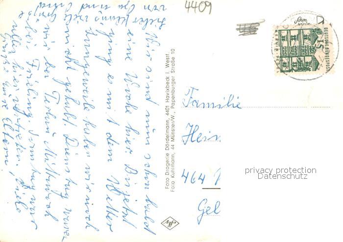 73702604 alte Postkarte Havixbeck Schloss Kirche St.Michael-Haus Jugendherberge Loginus-Turm postalisch gelaufen Erhaltung siehe scans [LiesaD40] KatCode: 11110005558020