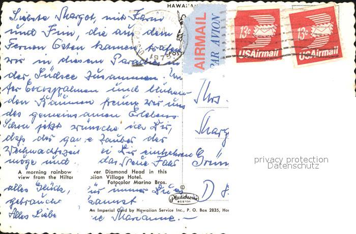 72516537 old postcard Hawaii US-State Morning Rainbow Dips over Diamond Head postalisch gelaufen Erhaltung siehe scans KatCode: 14140130000000