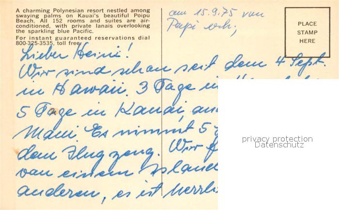 73369645 Hawaii US-State Sheraton Kauai Hotel postalisch nicht gelaufen Erhaltung siehe scans [KathaD81] KatCode: 14140130000000