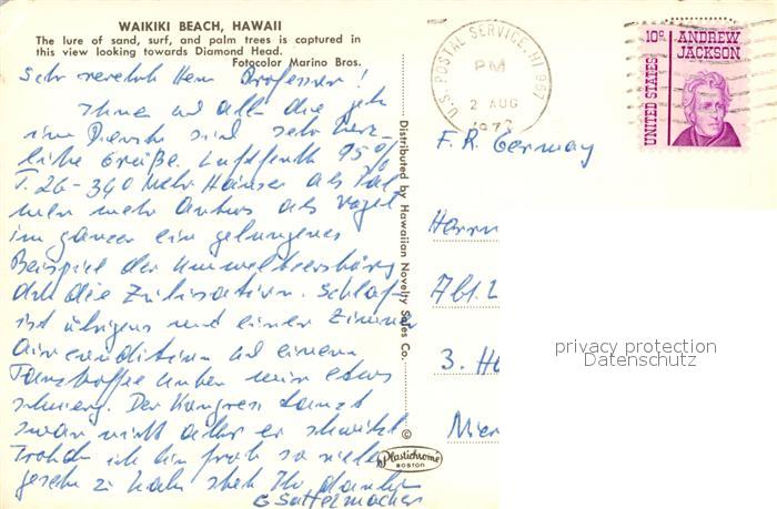 73571602 old postcard Hawaii US-State Waikiki Beach postalisch gelaufen Erhaltung siehe scans [WerneD78] KatCode: 14140130000000