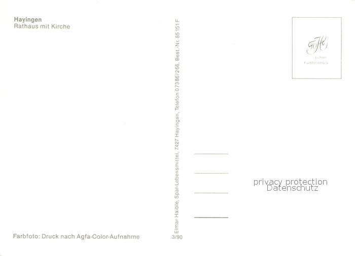 72974124 Hayingen Reutlingen Rathaus Kirche postalisch nicht gelaufen Erhaltung siehe scans [PaolaD17] KatCode: 11110008415034