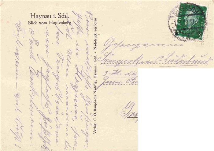 73974361 old postcard Haynau Chojnow PL Panorama Blick vom Hopfenberg postalisch gelaufen Erhaltung siehe scans [FriedD77] KatCode: 11410