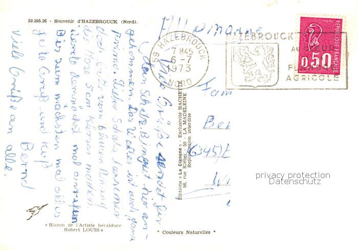 13591687 Hazebrouck Kirche Park Gebaeude Platz Wappen postalisch gelaufen Erhaltung siehe scans [FriedD77] carte postale Frie Katcode 11170059459295