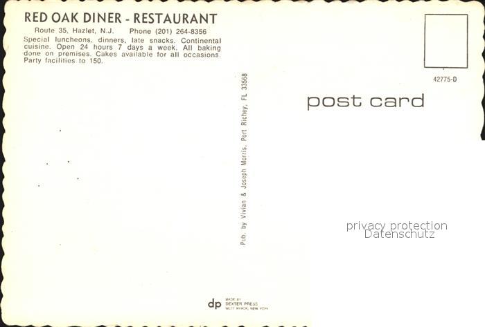 72487706 Hazlet Red Oak Diner Restaurant postalisch nicht gelaufen Erhaltung siehe scans KatCode: 14140320000000