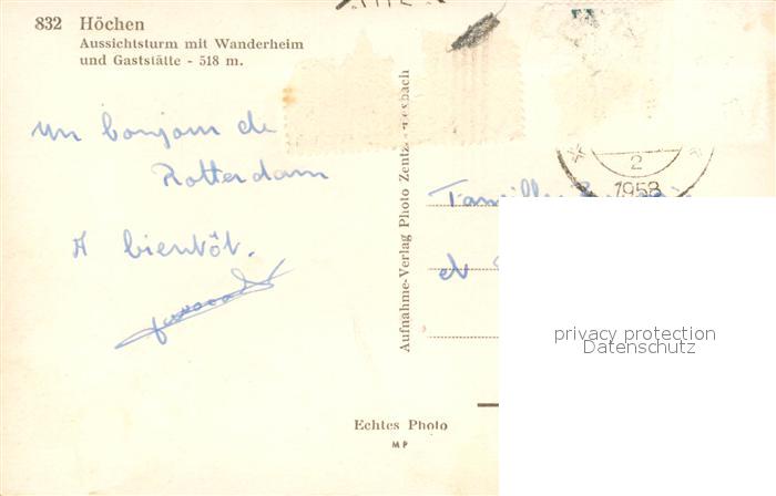 73556350 alte Postkarte H?chen Aussichtsturm Wanderheim Gastst?tte postalisch gelaufen Erhaltung siehe scans [PaolaD17] KatCode: