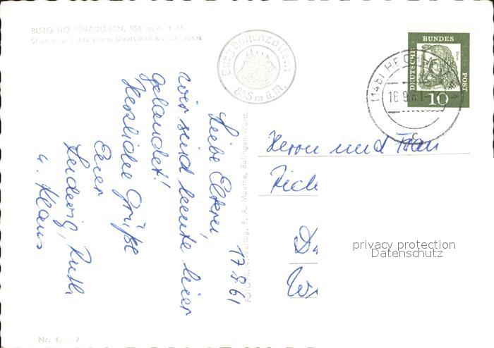 72404572 alte Postkarte Hechingen Burg Hohenzollern postalisch gelaufen Erhaltung siehe scans KatCode: 11110008417031