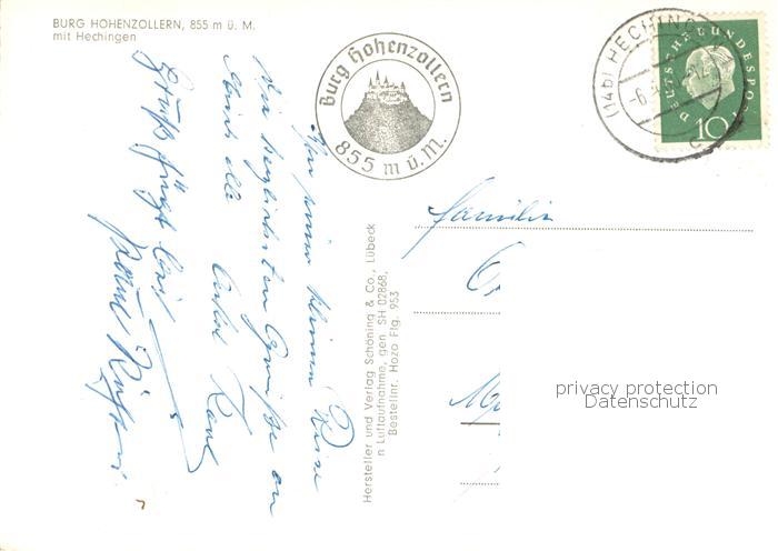 73760047 alte Postkarte Hechingen Burg Hohenzollern Fliegeraufnahme postalisch gelaufen Erhaltung siehe scans [WerneD78] KatCode: 11110008417031