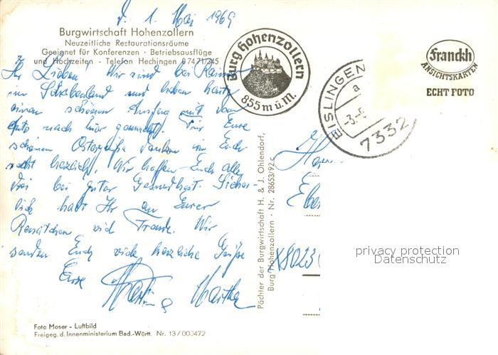 73713900 Hechingen Burg Hohenzollern Fliegeraufnahme postalisch nicht gelaufen Erhaltung siehe scans [WerneD78] KatCode: 11110008417031