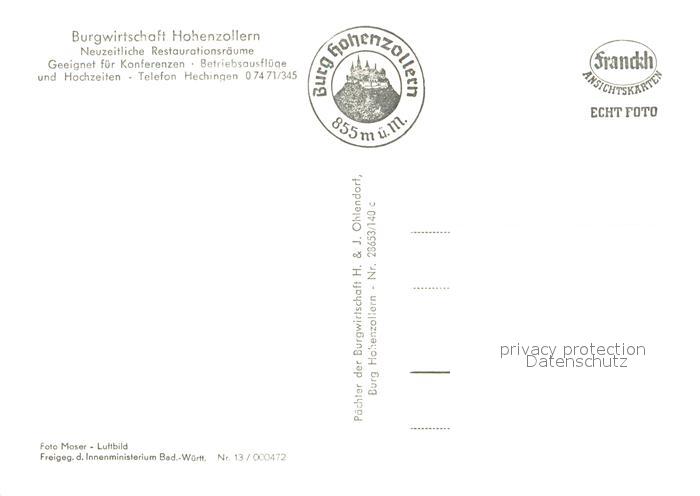 73617712 Hechingen Burg Hohenzollern Fliegeraufnahme postalisch nicht gelaufen Erhaltung siehe scans [FriedD77] KatCode: 11110008417031