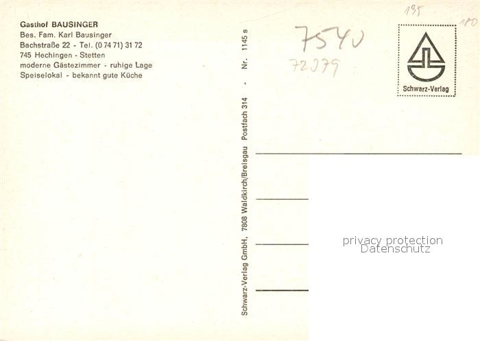 73569823 Hechingen Gasthaus Bausinger postalisch nicht gelaufen Erhaltung siehe scans [WerneD78] KatCode: 11110008417031
