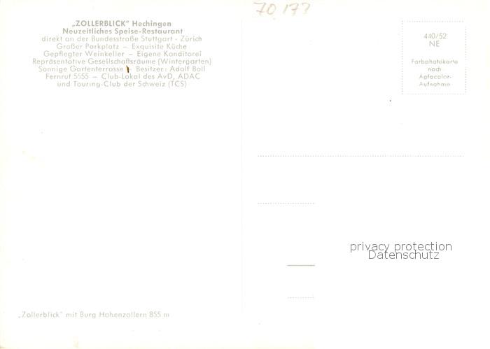 73855316 Hechingen Zollerblick Speise-Restaurant postalisch nicht gelaufen Erhaltung siehe scans [FriedD77] KatCode: 11110008417031