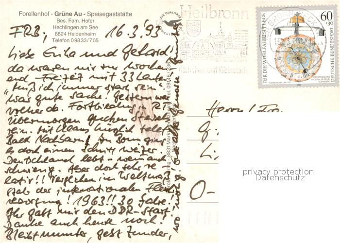 73777545 alte Postkarte Hechlingen See Forellenhof Gruene Au postalisch gelaufen Erhaltung siehe scans [FriedD77] KatCode: 11110009577140