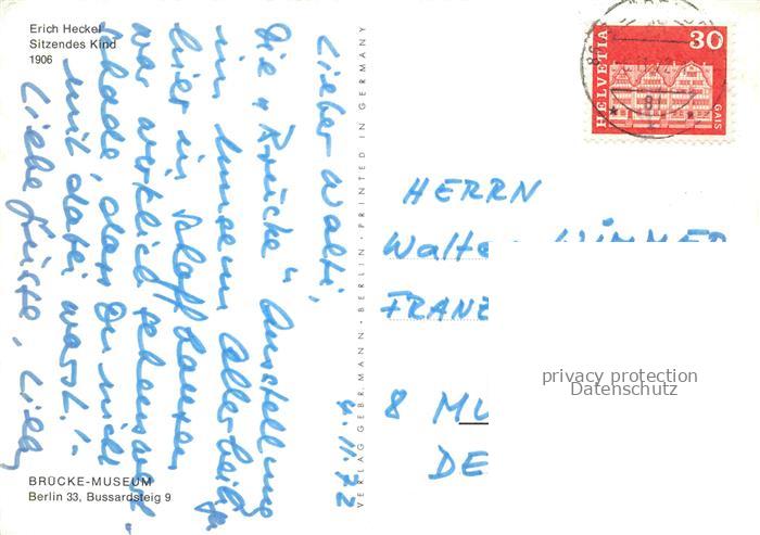 74091786 alte Postkarte HECKEL Erich Kuenstlerkarte Sitzendes Kind Berlin postalisch gelaufen Erhaltung siehe scans [SanaeD93] KatCode: 22240000003200