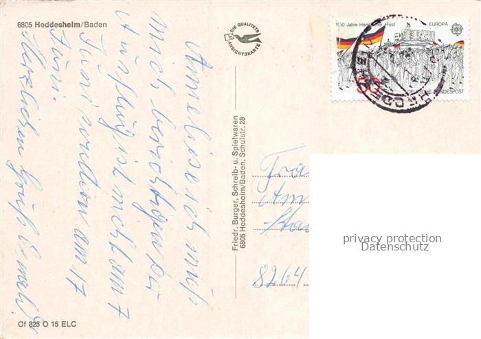 74156334 alte Postkarte Heddesheim Baden HEIDELBERG BW Rathaus Kirchturm Nordbadenhalle See Schule Stadtansicht Fachwerkhaus postalisch gelaufen Erhaltung siehe scans [Karloger] KatCode: 11110008226028