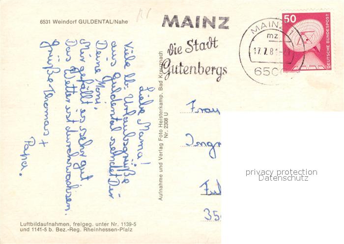 73636060 alte Postkarte Heddesheim Guldental Waldhilbersheim Fliegeraufnahmen postalisch gelaufen Erhaltung siehe scans [FriedD77] KatCode: 11110007133035