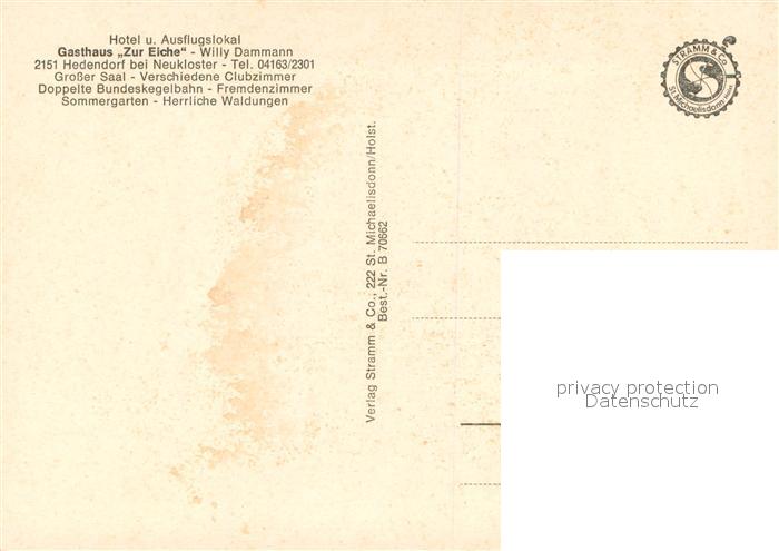 73726743 Hedendorf Hotel Ausflugslokal Gasthaus zur Eiche Kegelbahnen postalisch nicht gelaufen Erhaltung siehe scans [FriedD77] KatCode: 11110003359010