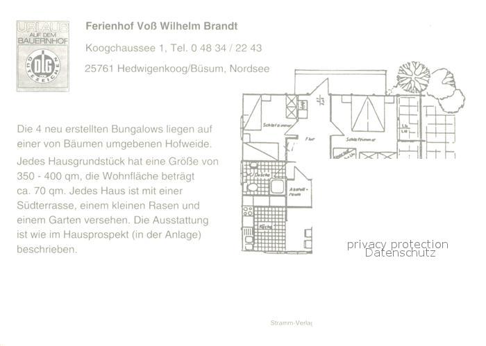 73642665 Hedwigenkoog Ferienhof Voss Wilhelm Brandt postalisch nicht gelaufen Werbekarte (keine Postkarte) Erhaltung siehe scans [WerneD78] KatCode: 11110001051043