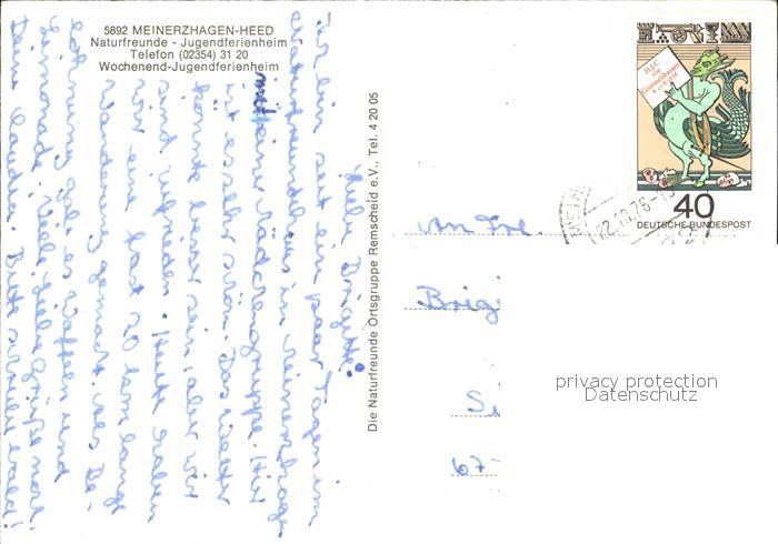 72125085 alte Postkarte Heed Meinerzhagen Naturfreundehaus Jugendferienheim Schloss Badinghagen Mattenschanze Skispringen postalisch gelaufen Erhaltung siehe scans KatCode: 11110005962036