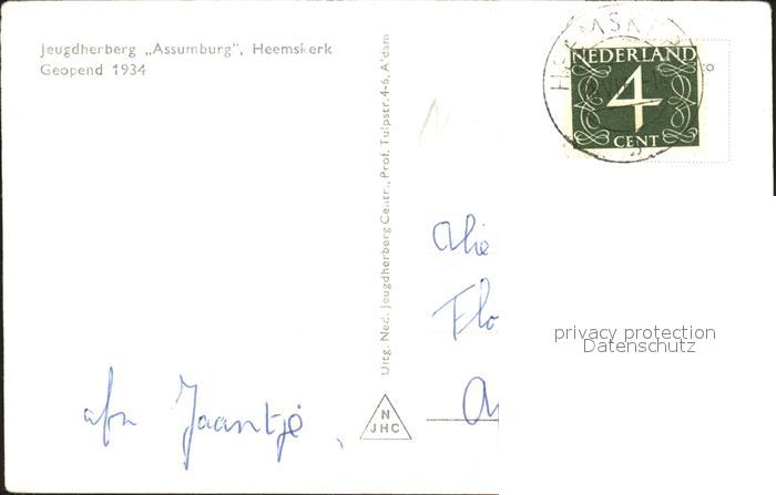 old postcard Heemskerk Jeugdherberg Assumburg Jugendherberge Schloss postalisch gelaufen Erhaltung siehe scans