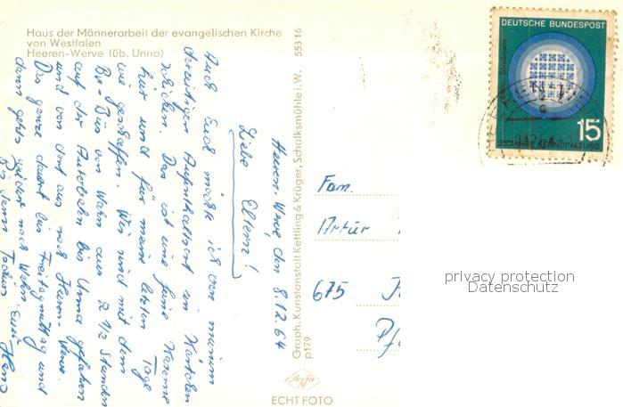 73779636 alte Postkarte Heeren-Werve Haus der Maennerarbeit der evangelischen Kirche von Westfalen postalisch gelaufen Erhaltung siehe scans [FriedD77] KatCode: 11110005978020
