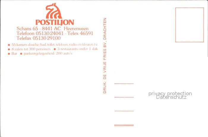 Heerenveen Hotel Postiljon postalisch nicht gelaufen Erhaltung siehe scans