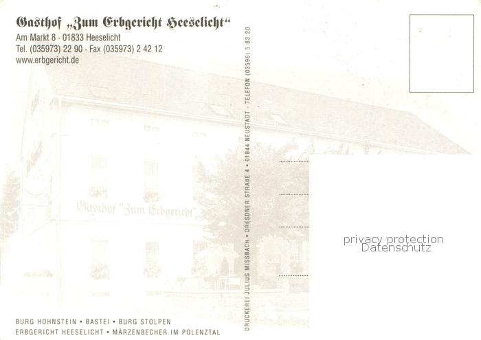73652845 Heeselicht Sebnitz Gasthof Zum Erbgericht Schloss Burgruine Blumen postalisch nicht gelaufen Erhaltung siehe scans [FriedD77] KatCode: 11110014287370