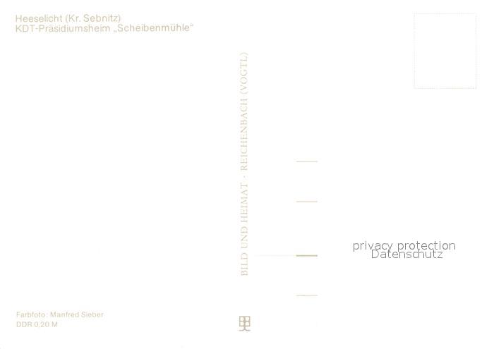 73059398 Heeselicht Sebnitz KDT Praesidiumsheim Scheibenmuehle postalisch nicht gelaufen Erhaltung siehe scans [WerneD78] KatCode: 11110014287370