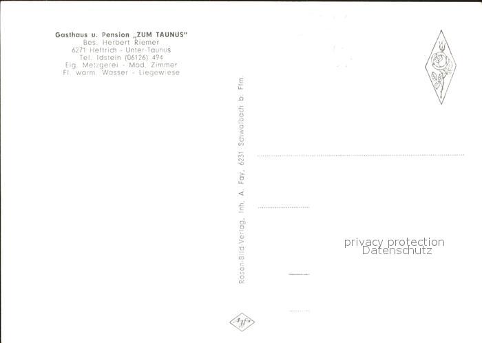72133731 Heftrich Gasthaus Pension Zum Taunus Reh Landschaft postalisch nicht gelaufen Erhaltung siehe scans KatCode: 11110006439008