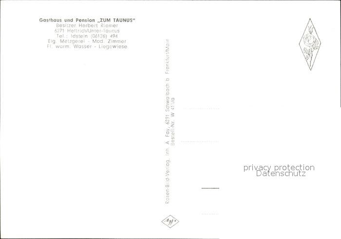 72127020 Heftrich Gasthaus und Pension Zum Taunus postalisch nicht gelaufen Erhaltung siehe scans KatCode: 11110006439008