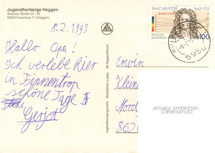 73720364 alte Postkarte Heggen Biggetal Finnentrop Ortsansicht mit Jugendherberge postalisch gelaufen Erhaltung siehe scans [FriedD77] KatCode: 11110005966012