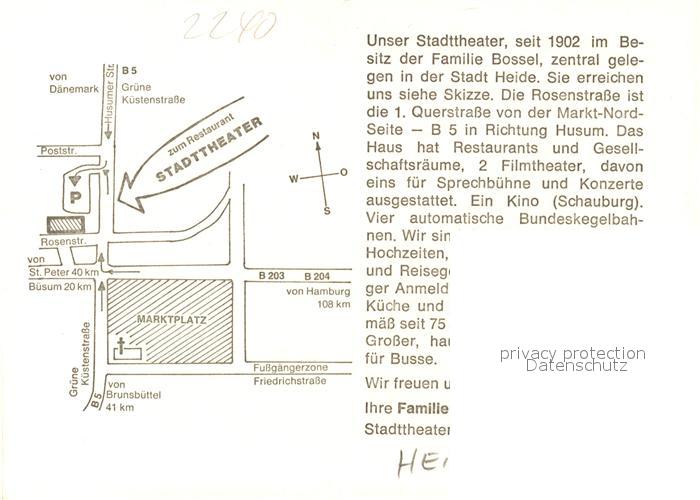 73086812 Heide Holstein Restaurant Stadttheater Kegelbahn postalisch nicht gelaufen Werbekarte (keine Postkarte) Erhaltung siehe scans [KathaD81] KatCode: 11110001051044