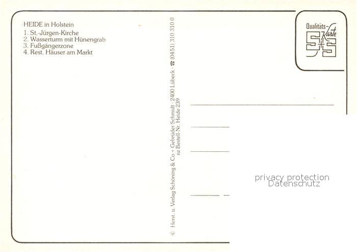 73192630 Heide Holstein St.-Juergen-Kirche Markt Wasserturm Huenengrab postalisch nicht gelaufen Erhaltung siehe scans [NatalD47] KatCode: 11110001051044