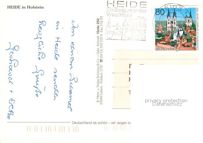 72970431 alte Postkarte Heide Holstein Suederstrasse Brunnen Markt Friedrichstrasse Pavillon Pfarramt postalisch gelaufen Erhaltung siehe scans [LiesaD40] KatCode: 11110001051044