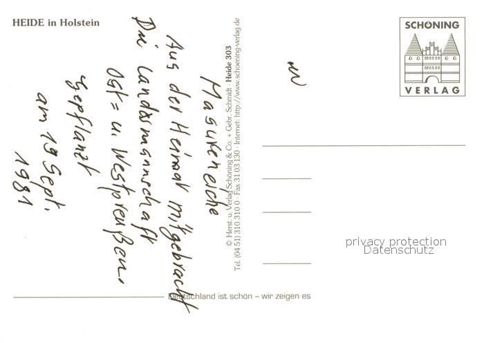 73208902 Heide Holstein Wasserturm Markt St Juergenkirche Altes Pastorat Schuhmacherjunge Brahmshaus Groth Museum Klaus Groth Stein postalisch nicht gelaufen Erhaltung siehe scans [WerneD78] KatCode: 11110001051044