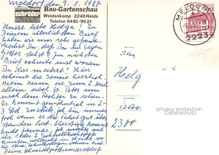 73760097 alte Postkarte Heide Meldorf Bau Gartenschau postalisch gelaufen Erhaltung siehe scans [WerneD78] KatCode: 11110001051074