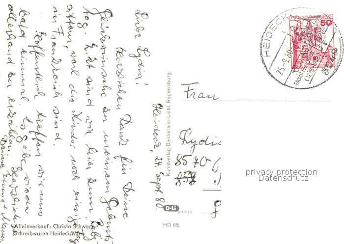 73839888 alte Postkarte Heideck Mittelfranken Gesamtansicht Marktplatz Brunnen Erholungszentrum Schlossberg Hauptstrasse postalisch gelaufen Erhaltung siehe scans [FriedD77] KatCode: 11110009576126