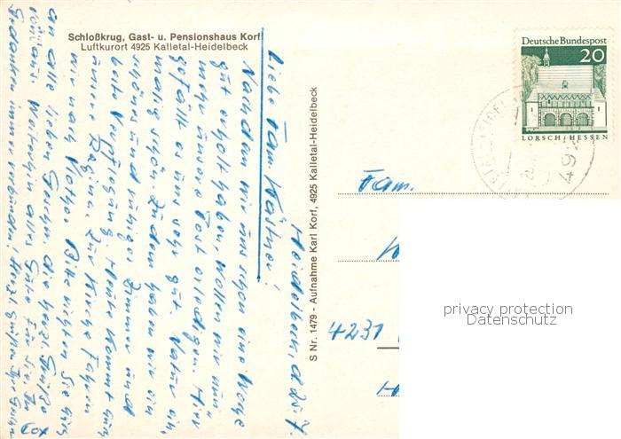 73832658 alte Postkarte Heidelbeck Panorama Schlosskrug Forsthaus Alte Muehle postalisch gelaufen Erhaltung siehe scans [FriedD77] KatCode: 11110005766036