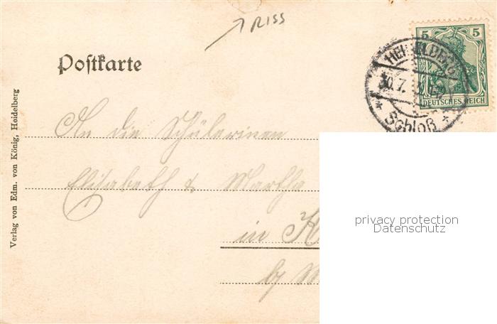 73807355 alte Postkarte Heidelberg Erzgebirge Grosses Fass Kupferstich von Fehr postalisch gelaufen Erhaltung siehe scans [WerneD78] KatCode: 11110014181350