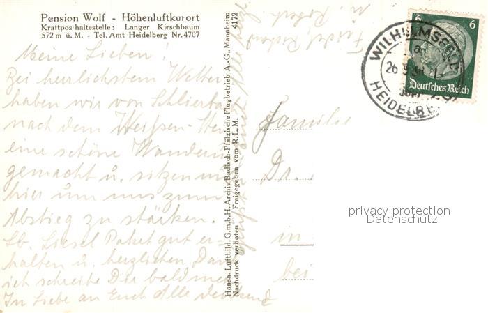 73804047 alte Postkarte Heidelberg Erzgebirge Pension Wolf Fliegeraufnahme postalisch gelaufen Erhaltung siehe scans [WerneD78] KatCode: 11110014181350