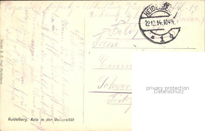 72096670 alte Postkarte Heidelberg Neckar Aula in der Universitaet postalisch gelaufen Feldpost Erhaltung siehe scans KatCode: 11110008221000