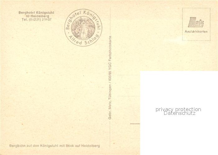 73266704 Heidelberg Neckar Bergbahn auf den Koenigstuhl mit Blick auf die Stadt postalisch nicht gelaufen Erhaltung siehe scans [FriedD77] KatCode: 11110008221000