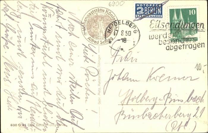 41270882 Heidelberg Neckar Bergbahn Endstation Restaurant KatCode 11110008221000