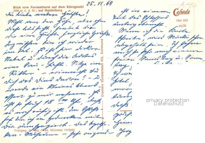 72755544 Heidelberg Neckar Blick vom Fernsehturm auf dem Koenigstuhl Fliegeraufnahme postalisch nicht gelaufen Erhaltung siehe scans [WerneD78] KatCode: 11110008221000