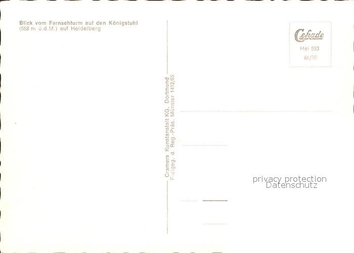 72377615 Heidelberg Neckar Blick vom Fersehturm auf dem Koenigstuhl nach Heidelberg postalisch nicht gelaufen Erhaltung siehe scans KatCode: 11110008221000
