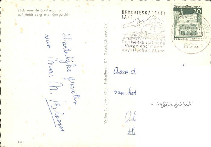 72426284 alte Postkarte Heidelberg Neckar Blick vom Heiligenbergturm Koenigstuhl postalisch gelaufen Erhaltung siehe scans KatCode: 11110008221000